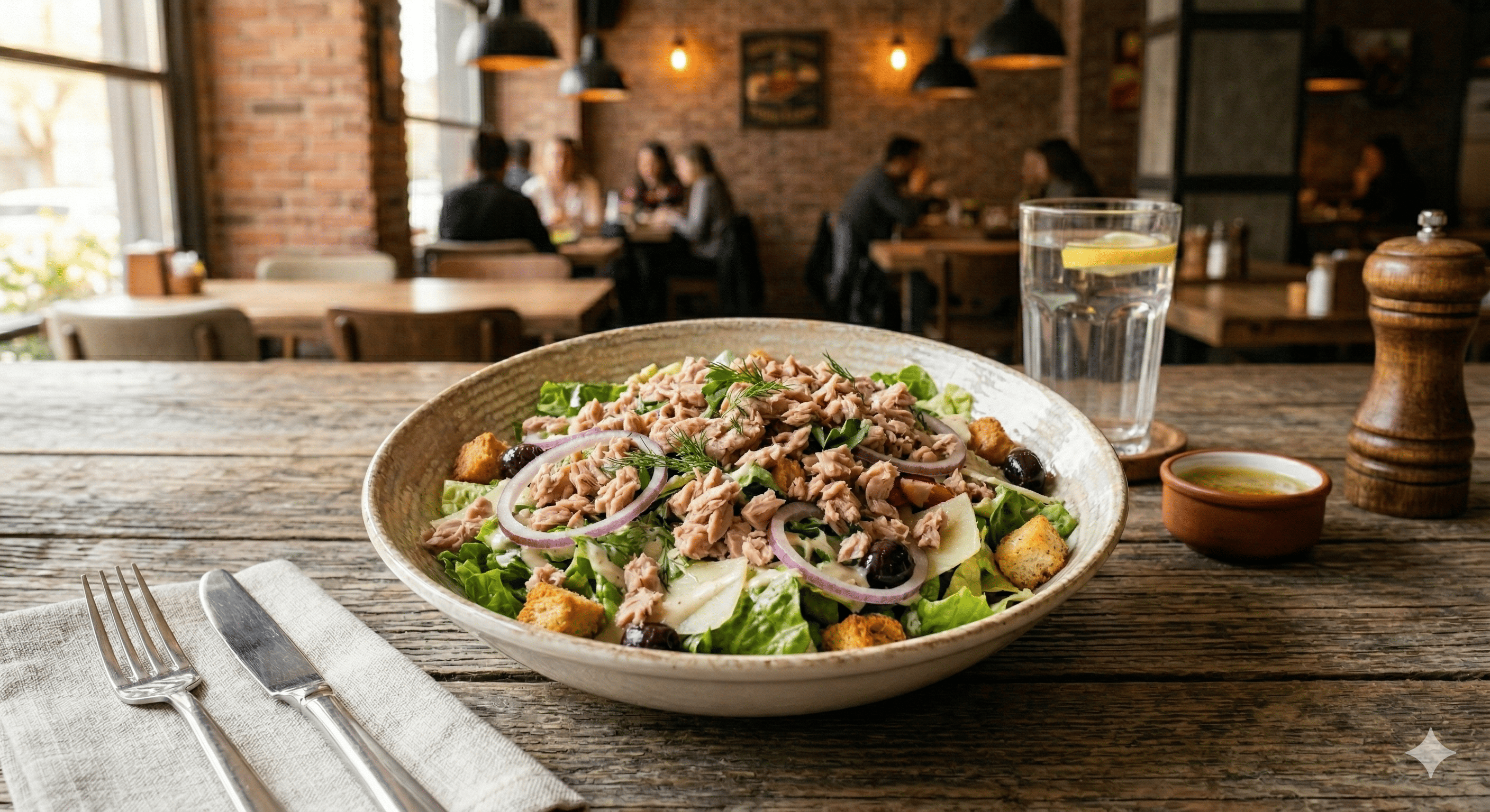 Ton Balığı, Marul, Çeri Domates, Salatalık, Havuç, Mısır, Dilim Zeytin, Özel Sos ile