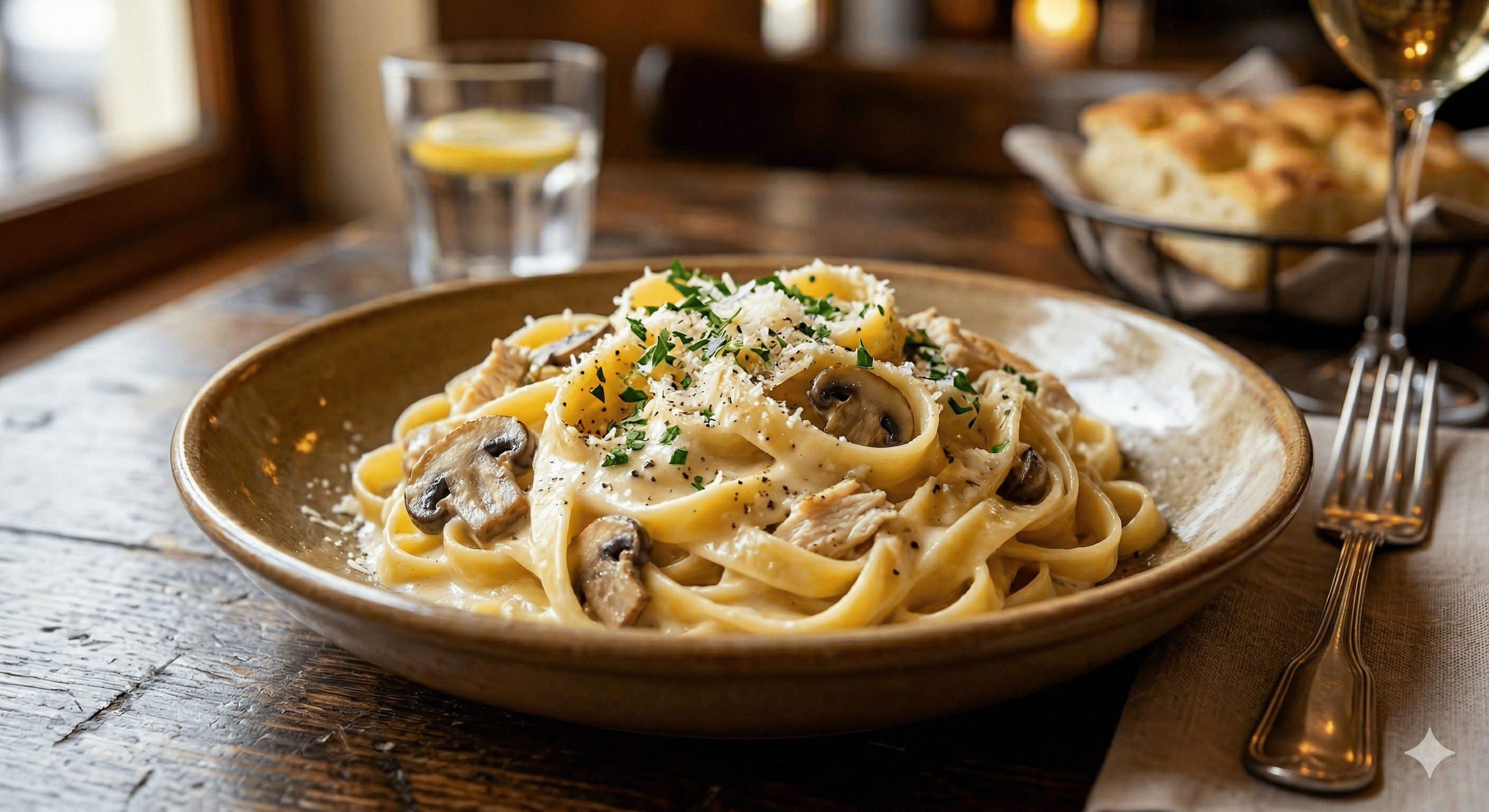 Tavuk bonfile,krema,mantar,parmesan peyniri,
