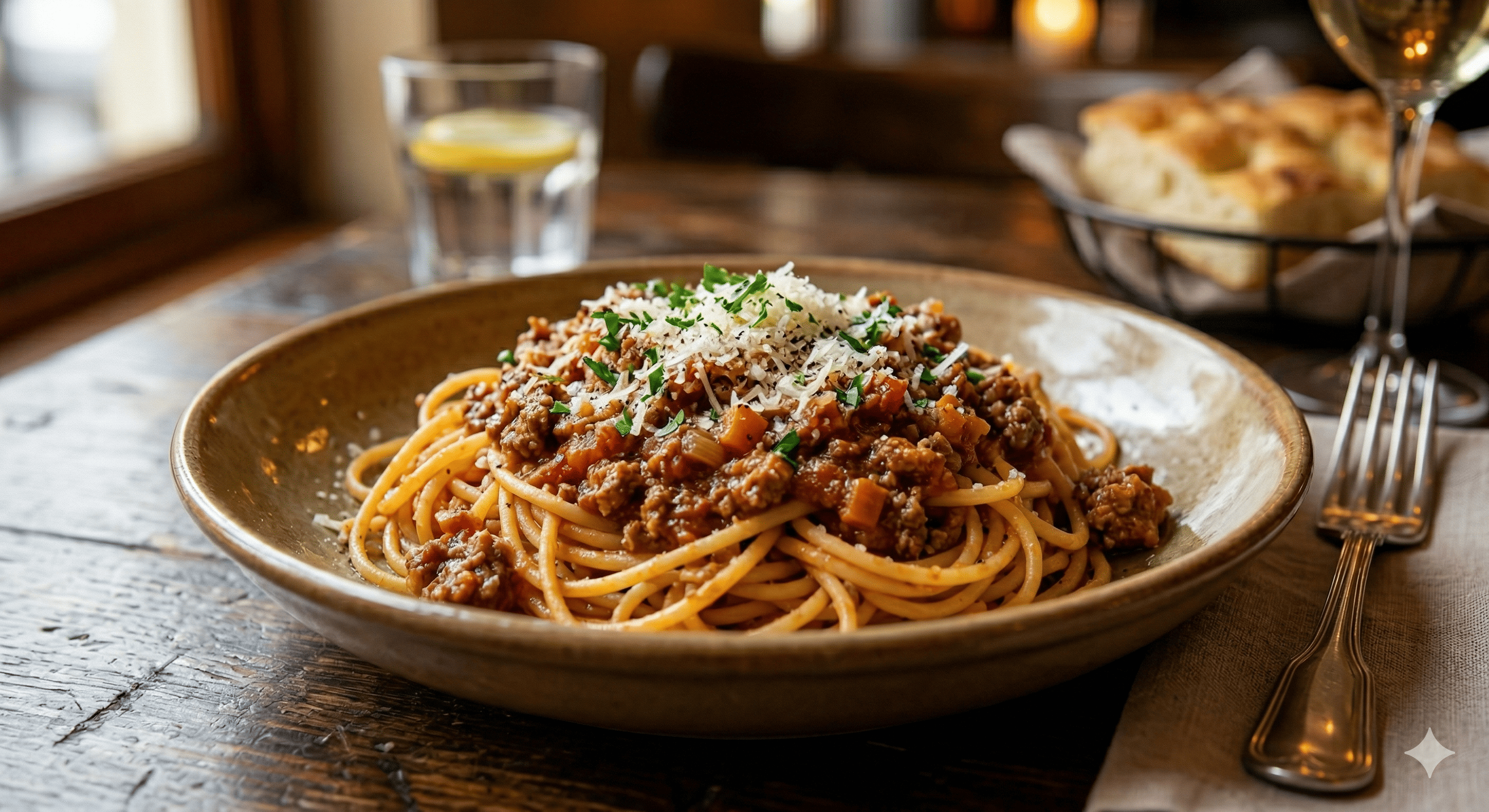 Domates sos,bolognese sos,parmesan peyniri,maydonoz